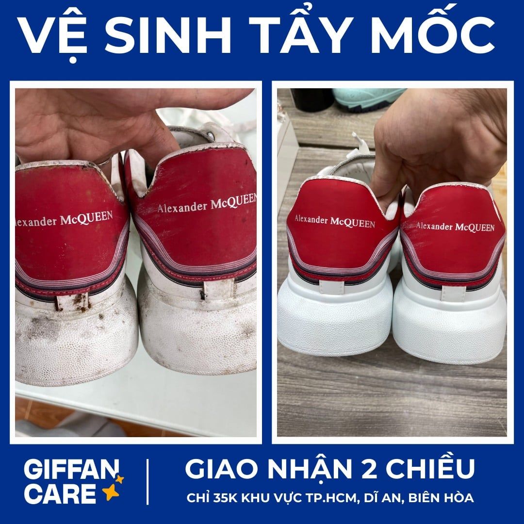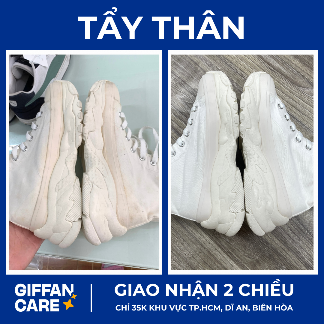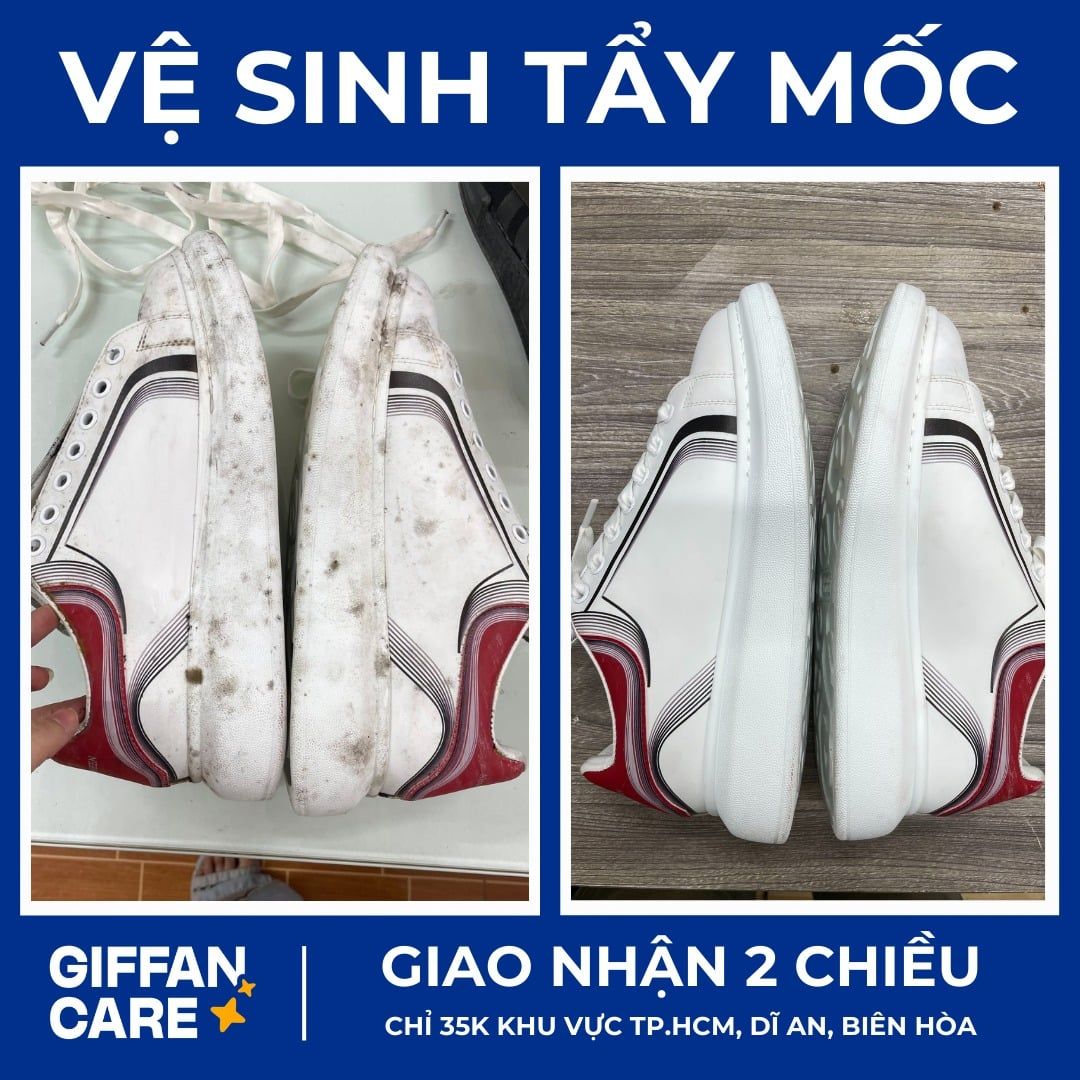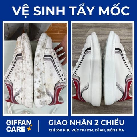 Giày là phụ kiện không thể thiếu trong cuộc sống hàng ngày, nhưng việc giày bị ố vàng hoặc mốc sau một thời gian sử dụng là điều rất dễ gặp, đặc biệt với giày trắng hoặc giày vải. Những vết ố và mốc không chỉ làm mất thẩm mỹ mà còn ảnh hưởng đến độ bền của giày. Với dịch vụ tẩy ố (mốc) đế giày, thân giày chuyên nghiệp, đôi giày của bạn sẽ trở lại sáng bóng, sạch sẽ như mới, giúp tự tin hơn mỗi khi mang ra ngoài.